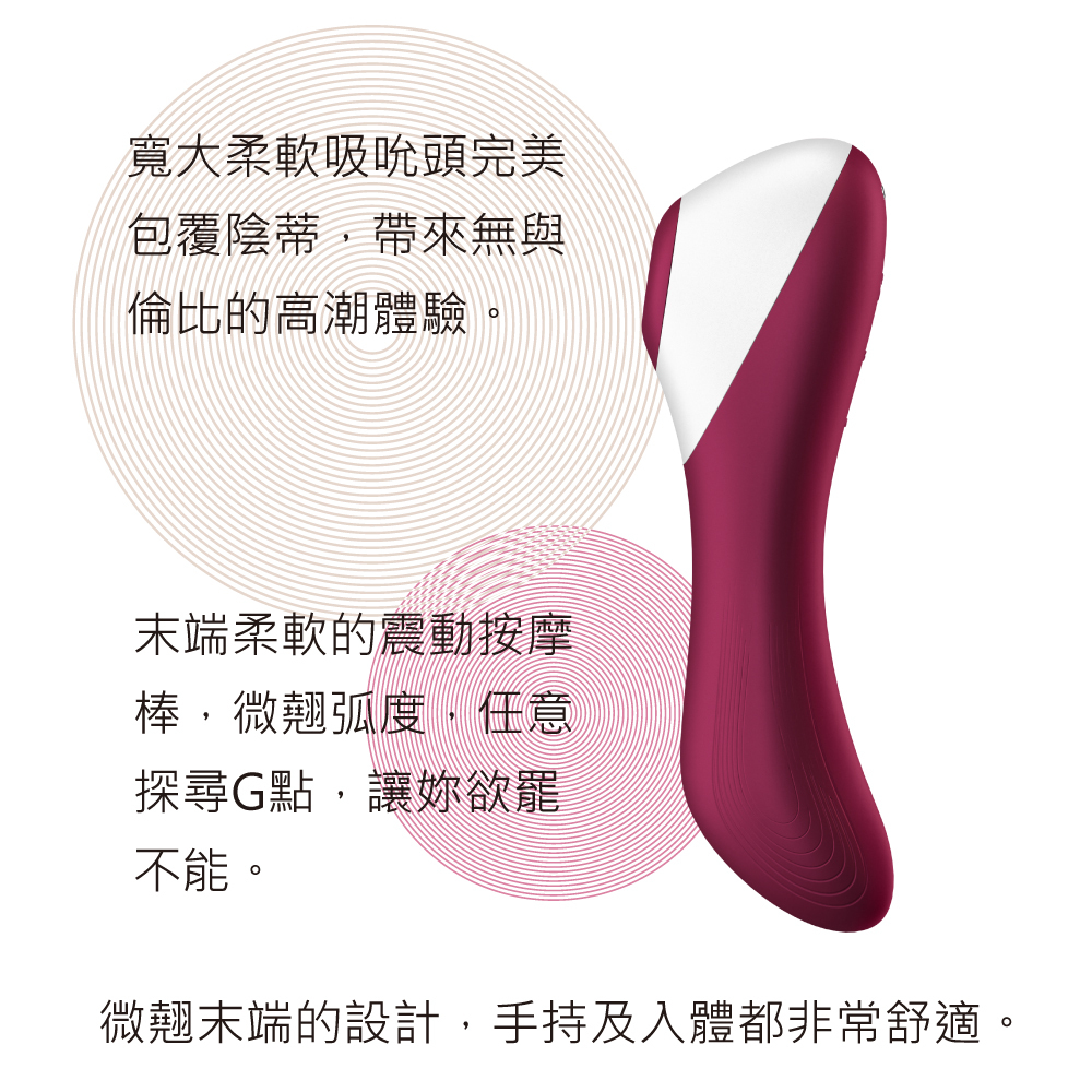 ‧ 二合一設計,結合陰蒂吸吮震動、G點按摩棒